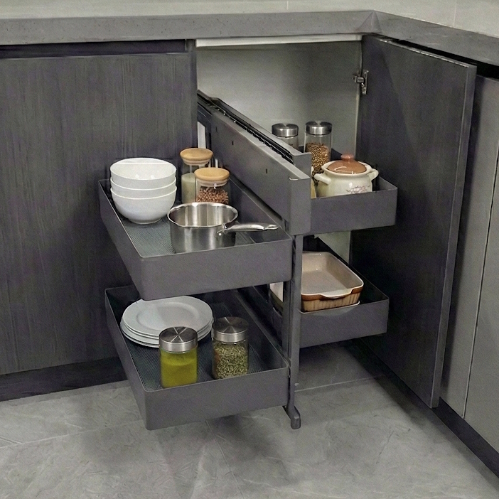 新品介紹~板岩灰緩衝全展式轉角置物櫃