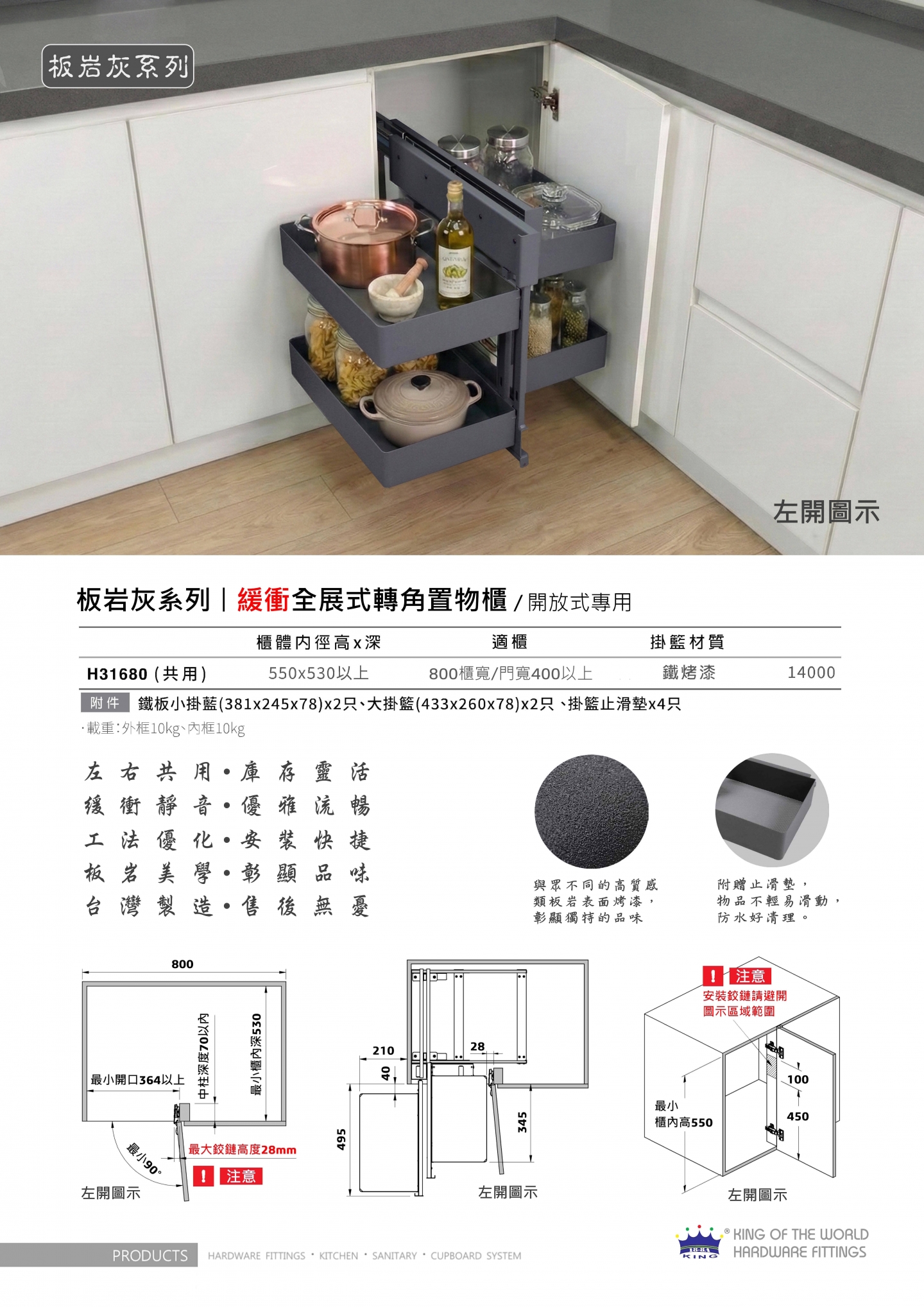 新品介紹~板岩灰緩衝全展式轉角置物櫃